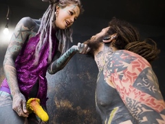 Alt dominatrix pegging tattooed worker