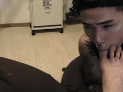 Asian twink rides straight guy dick and cums after blowjob