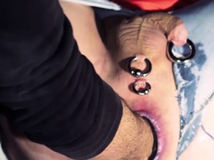 Deepthroating stud assfisted by car mechanic after oral