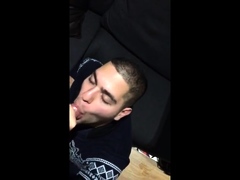 Slave deepthroating his master's huge cock
